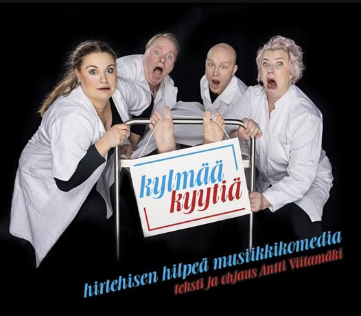 Teatteri Eurooppa Neljä esittää Antti Viitamäen hirteisen hilpeän musiikkikomedian "kylmää kyytiä" Kolhon koululla perjantaina 12.12.2025 klo 18.00.